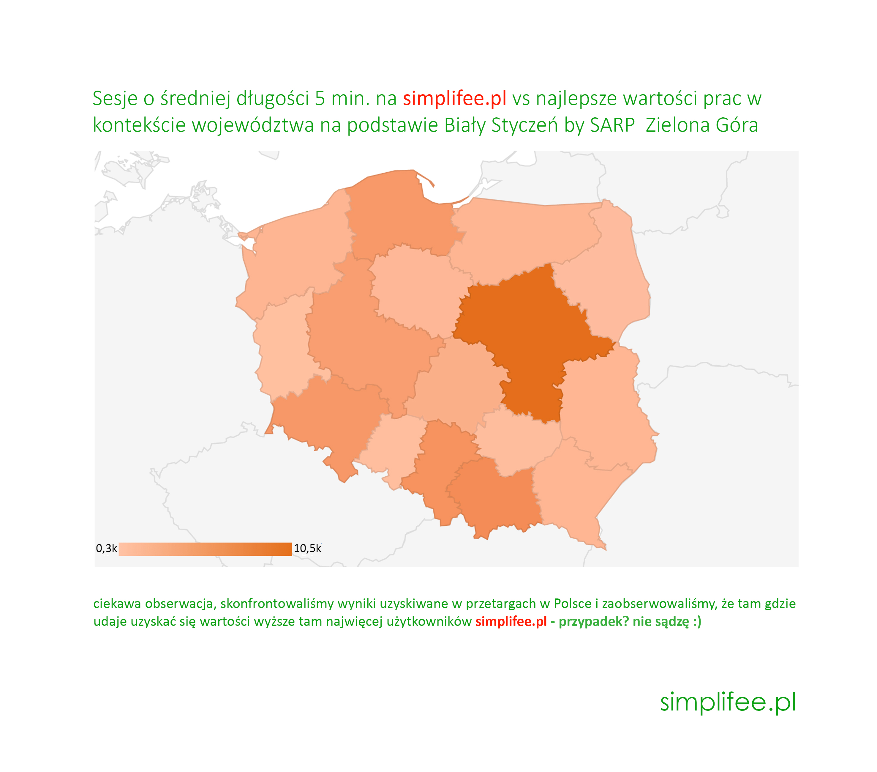 Analizując kolejną publikację SARP Zielona Góra zauważyliśmy zbieżność częstotliwości wykorzystywania narzędzi serwisu simplifee.pl do analizy wartości prac projektowych, a bardzo dobrymi wynikami osiąganymi w przetargach. Tam gdzie więcej sesji, więcej analiz i dłuższy czas obecności w serwisie tam też lepsze wyniki pracowni, w kilku przypadkach nawet dwukrotnie wyższe. W przyszłości zamierzamy przeprowadzić cykl badań jakościowych, które odpowiedzą na pytanie czy simplifee ma realny wpływ na wyniki. Gdyby tak było będziemy to czytali jako nasz największy sukces. Tymczasem pozostajemy do dyspozycji, edukujemy.....