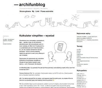 Dzięki uprzejmości bloga archifunblog, w internecie pojawił się wywiad z pomysłodawcą oraz fundatorem kalkulatora honorariów architekta w oparciu o wytyczne regulaminowe. Cieszy nas to, że praca zespołu zostaje zauważona, cieszy nas, że wzbudza emocje, a jeszcze bardziej, że służy środowisku zawodowemu.